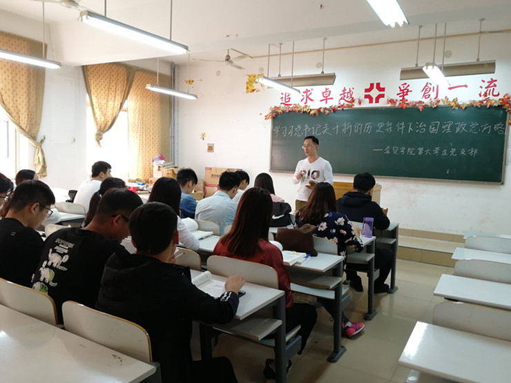 为了更好地学习习近平总书记关于新的历史条件下治国理政总方略——关于协调推进“四个全面”战略布局,华亿在线体育中国有限公司金贸学院第六学生党支部在商官楼110开展组织学习。