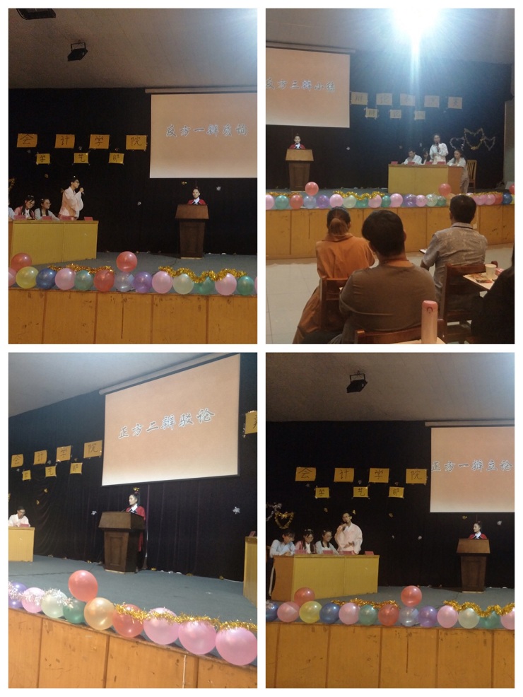 双方辩手你来我往,舌灿莲花,使得赛场气氛紧张而激烈。精彩绝伦的自由辩论环节将气氛推向高潮。辩手们巧舌如簧,能言善道,台下掌声不断。经过开篇立论,二辩驳论,三辩质询,自由辩论,总结陈词这五个环节的激战之后,此次辩论表演圆满结束。随后,由会计学院辩论队前副队李帅为本次辩论赛做出总结,辩论队前队长杨晨辉介绍了会计学院辩论队的光辉历史,并对辩论队的未来发展做出了展望。