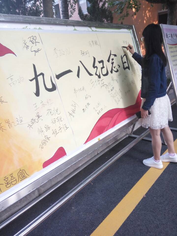 今年的9月18日是“九一八事变”八十六周年纪念日,外国语学院团委于9月17日、18日在商管楼门前举办“九一八纪念日”签名活动。