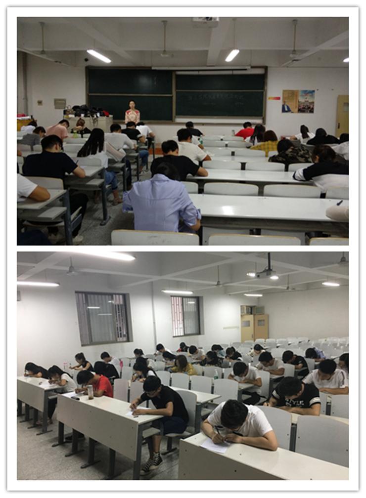 考场之中,学生纷纷严格遵守考场纪律,仔细审题,认真答题;无交头接耳,左顾右盼现象。监考老师尽职尽责,采用一前一后、轮流巡视监考模式。整个考场呈现一幅严肃安静景象,考纪严谨,考风端正。