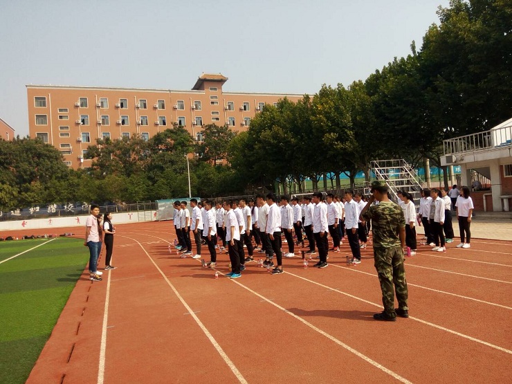 虽然烈日炎炎,但是在田径场的外侧就已听到教官们嘹亮的哨声。伴随着“一二一,一二一”的口号,新生们迈着矫健的步伐训练着。一个个虽然早已汗流浃背,但仍不懈怠,刻苦训练。团委副书记董雪带领成员们为教官和新生们发放饮用水,同时向教官们表示敬意,感谢教官们的辛苦付出。随后她强调天气炎热大家应该多喝水,照顾好自己的身体。新生们在休息的时刻与团委们积极的互动,大家纷纷表示为他们的到来而感到温暖,同时也更加振奋了他们军训的气势。活动在大家的掌声中顺利结束。