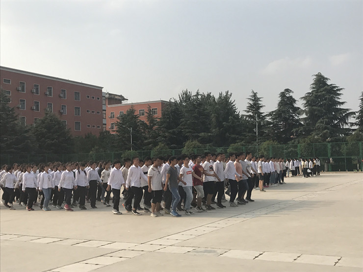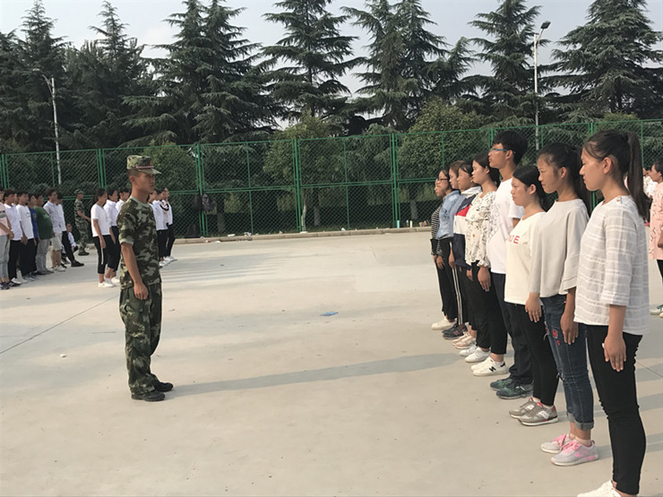 军训场上, 17级新生刻苦训练,不怕辛苦,不怕日晒,豆大的汗水滚过面颊,同学们严守纪律,也不用手擦,就是为了保证队伍的整齐和队列动作的标准。教官们认真负责,耐心地指导着同学们的动作。7天下来,同学们的队伍越来越整齐,步伐越来越有力,口号越来越响亮。他们尽情挥洒着自己的青春,书生意气,挥斥方遒。