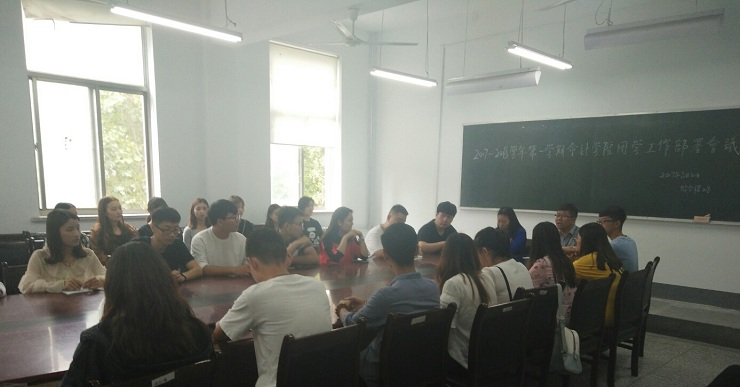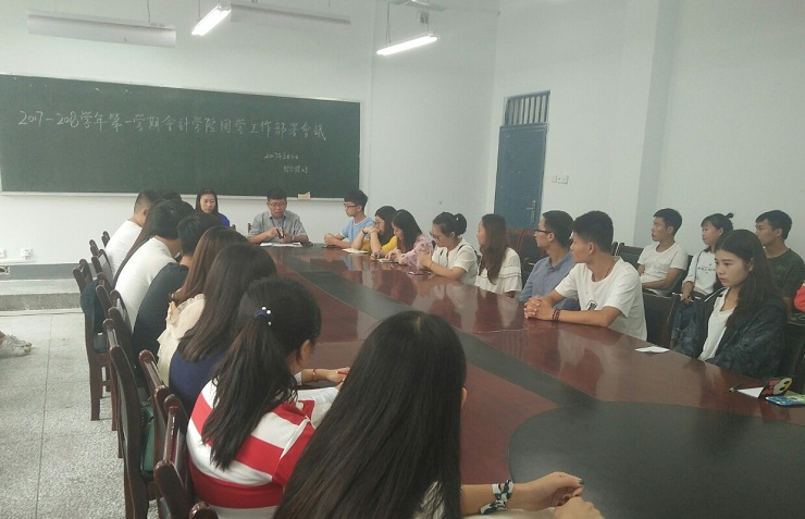 为保证会计学院顺利完成即将到来的迎新工作,8月31中午12:30,会计学院团学会于综合楼218教室召开了会计学院团学工作部署会议。会计学院行政秘书兼团委书记陈刚老师,以团委副书记董雪、学生会主席徐扬、社联理事长撖帅博为代表的全体主席团成员及全体部长、部分副部长参加了本次会议。