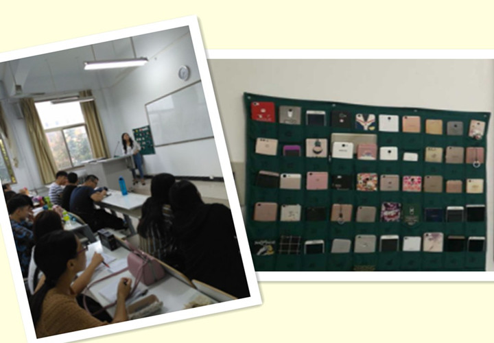从去年9月初开始,我院15级学生专门召开“手机入袋,心回课堂”主题班会,向同学们宣读倡议书,并让大家承诺签名。从今年3月份起,各班开始推行这一措施,在上课时间将手机统一放入配备的收纳袋。每个小口袋都对应一个序号,同学们自觉将个人手机关机或静音后放入收纳袋,班干部做好本节课的手机收纳情况统计,课后,同学们自行取回手机。