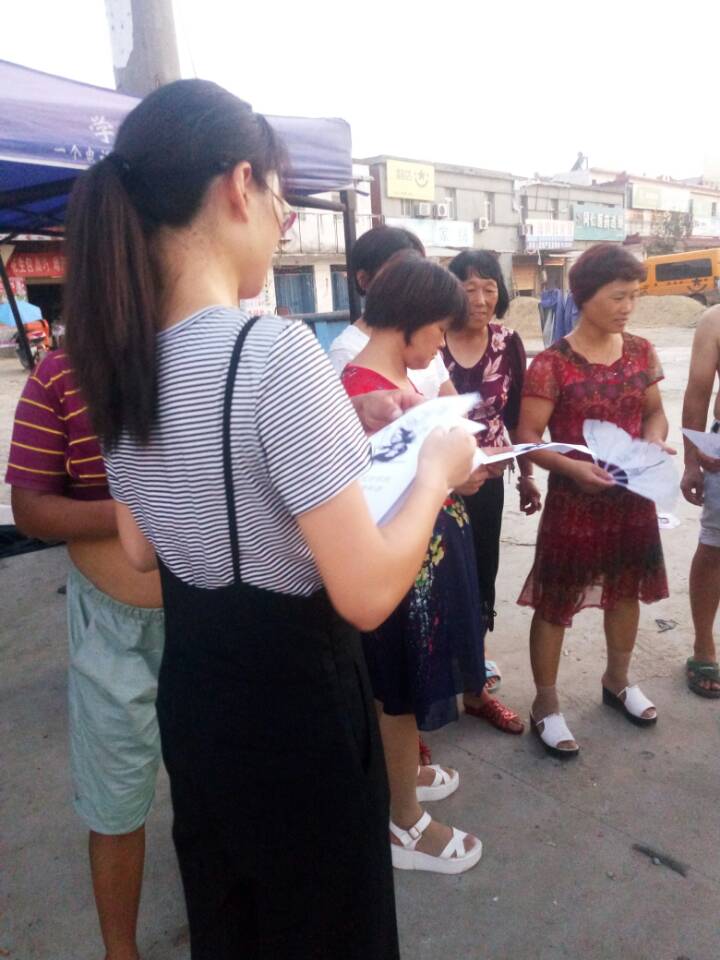 炎炎夏日,外语系反邪教小分队队员来到驻马店市西严店街进行反邪教宣传。