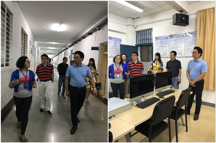 在艺术大楼,尹总参观了景观工作室、新媒体实验室、升义工坊,以及各专业成果展厅,详细了解了各实验室和工作坊设备使用和运营情况,对各专业展厅内所展示的艺术成果表示高度赞赏。在正在建设中的经管实训中心,尹总详细了解了各楼层和各功能区的划分、作用以及建设进度情况,对装修设计及未来运营提出建设性的意见和建议。在资讯大楼,尹总先后参观了移动智能终端实验室、电子与现场总线过程控制实验室、电力电子与电机控制实验室,以及智能机器人仿真实验室等,对我校先进的信息工程实验设备表示赞叹和肯定。最后,尹总一行还参观了我校大学生创业实践中心。