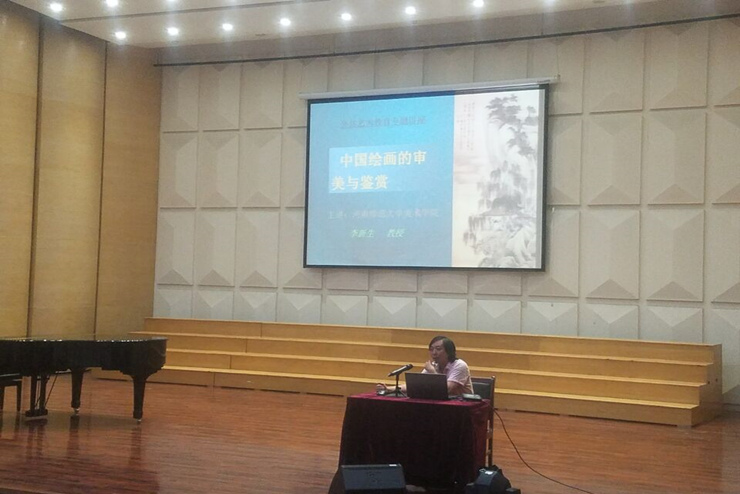 6月22日上午8:30,艺术系特邀河南师范大学美术学院李新生教授在艺术楼音乐厅开展了主题为《中国绘画的审美与鉴赏》的专题讲座,艺术系赵维平主任以及艺术设计专业的老师和学生参加了此次讲座。