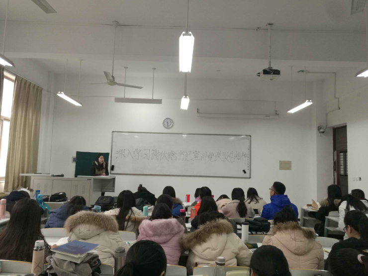 各年级各班将学习谢伏瞻书记党课报告精神与学习宣传党的十九大精神结合起来,开展了学习主题班会、座谈会、小组学习会等活动。如15汉本班刘月在班会上传达谢伏瞻书记党课报告的主要精神,围绕“青年一代有理想、有本领、有担当,国家就有前途,民族就有希望”展开论述。随后由班级组织委员、宣传委员发言、讨论,带领大家共同学习。