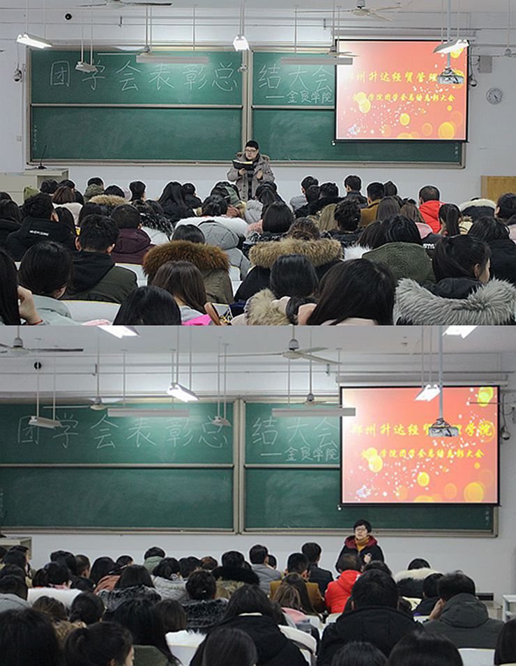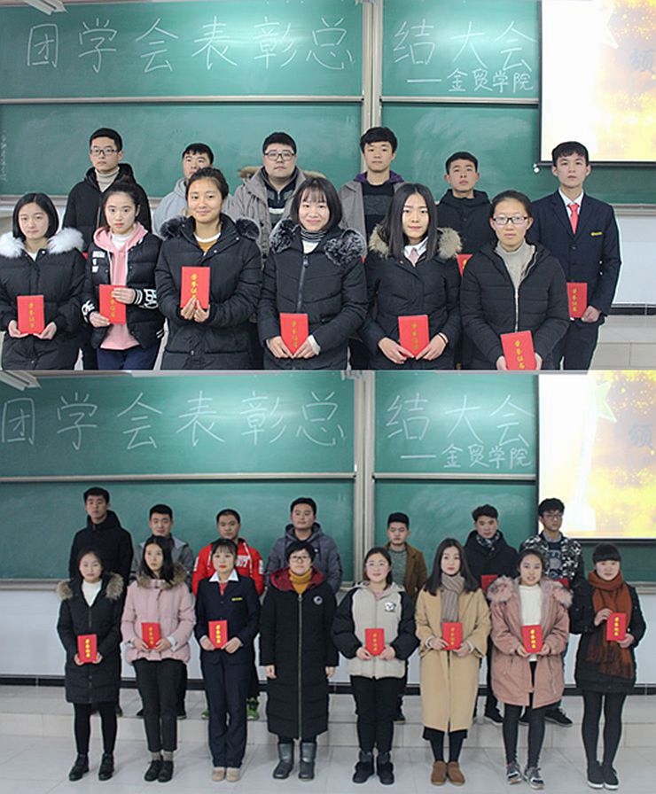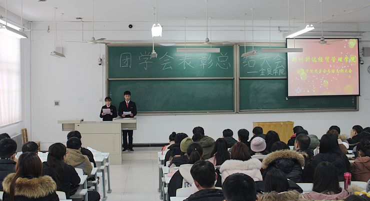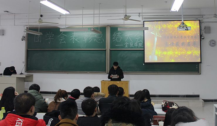 2018年,又是新的一年,同样也是金融贸易学院团委学生会新的开始、新的征程。金贸团学会为了在新的一年继续发扬金贸精神,总结过去一年中各类活动的经验与成果,表彰先进团学成员的工作事迹,鼓励更多团学成员积极地参与到工作中。为此,金贸团学会表彰总结大会于1月4日14:30在时金楼115教室举行。参加本次大会的领导及嘉宾有:金贸学院行政秘书兼团委书记闫帅老师、团委常务副书记李雷老师,金贸学院团委副书记李征宇、学生会主席李浩天、社联理事长白嘉伟、学生会副主席李宏润、郭晓阳、李丽娜及各部门部长、副部长。