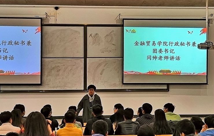 接着,由行政秘书兼团委书记闫帅老师上台致辞。她指出学生可以互相开课,以“老”带“新”,这将会提高团校学习的效率,可以更加注重到班级的核心。并且希望团校各班班主任组织好这个集体,积极传授经验给新成员。