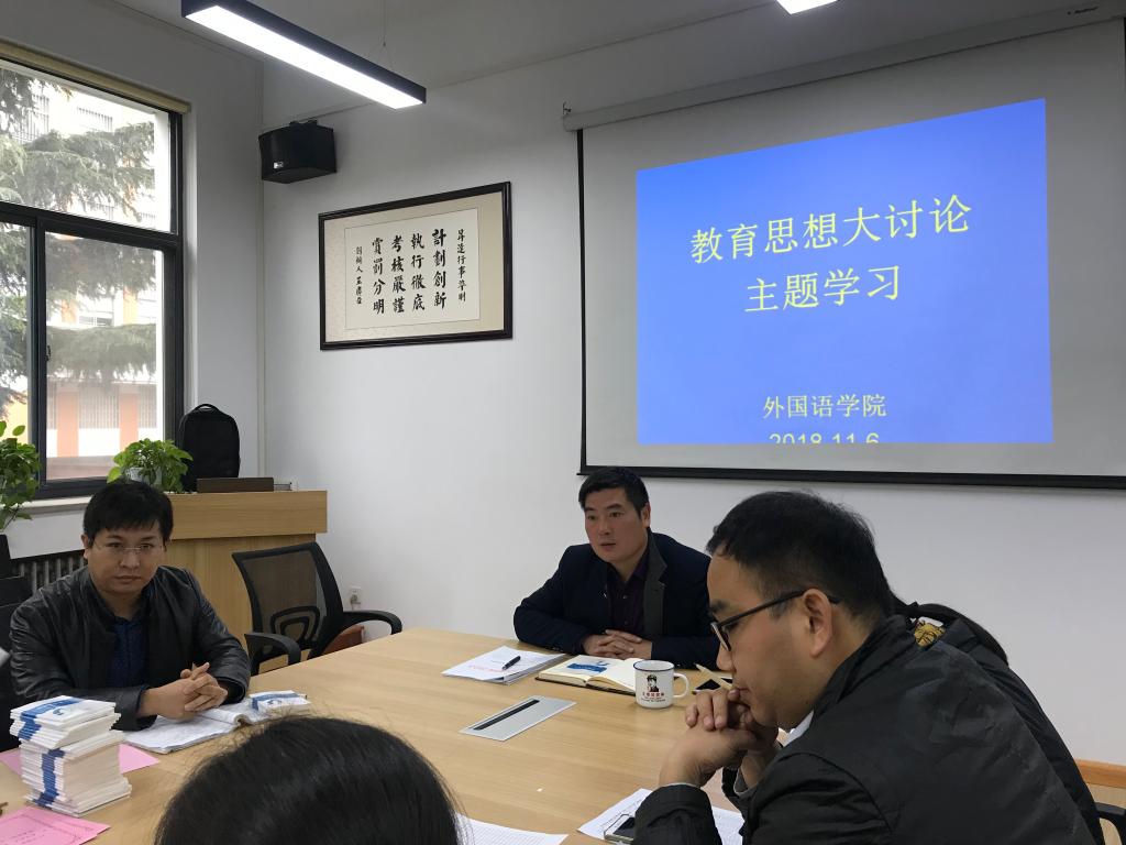 依据外国语学院开展教育思想大讨论工作的部署计划,11月6日下午,辅导员学习组在院党总支书记石皓召同志和行政秘书惠凯赟同志的带领下,认真组织了第一次全体学习。