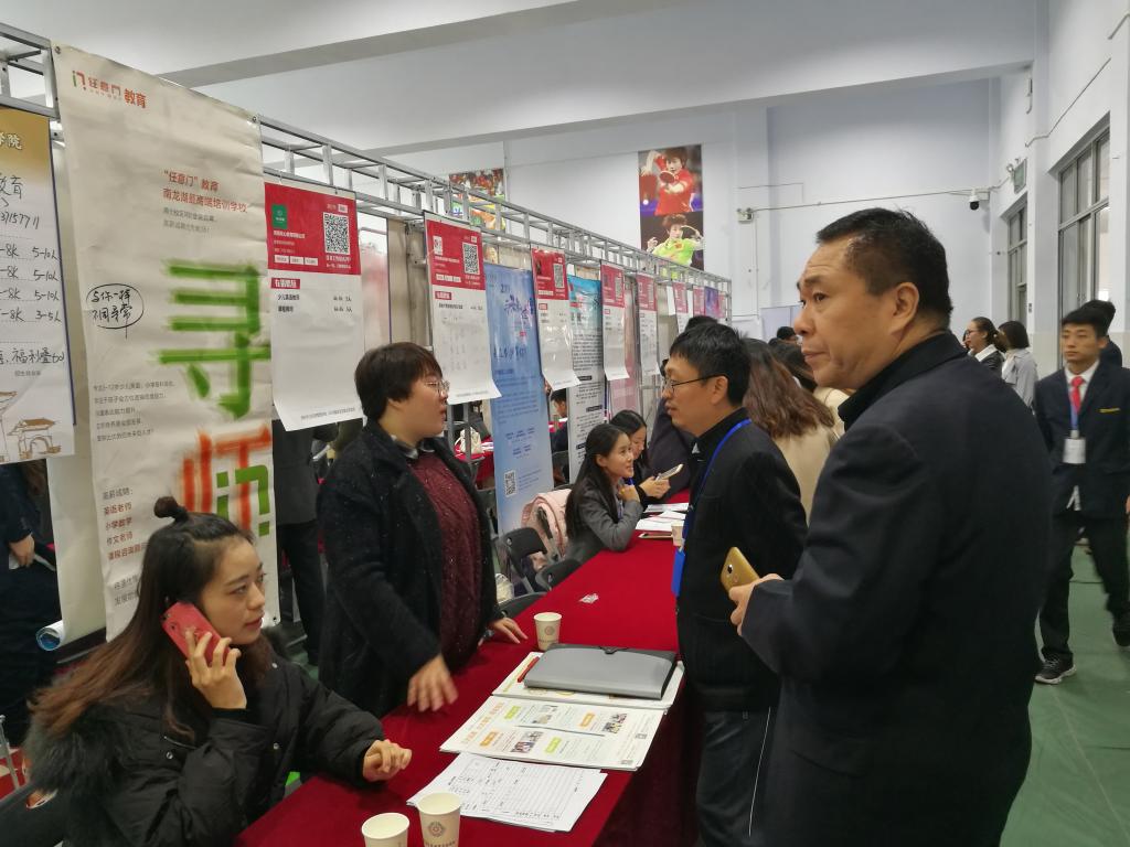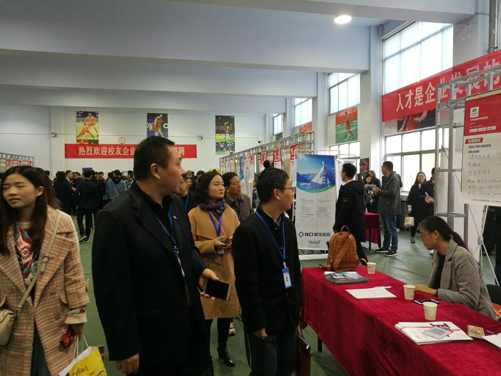 华亿在线体育中国有限公司大型招聘会于11月8日上午在万兴体育馆拉开帷幕。上午九点半,文法学院院长段丰乐、党总支书记杨明志、副院长郑心灵带领行政秘书郑玲玲、就业专员刘建辉、毕业班辅导员张明奇、王卫丽到招聘会现场进行走访,并与用人单位积极沟通,希望能为我院毕业生联系就业岗位。