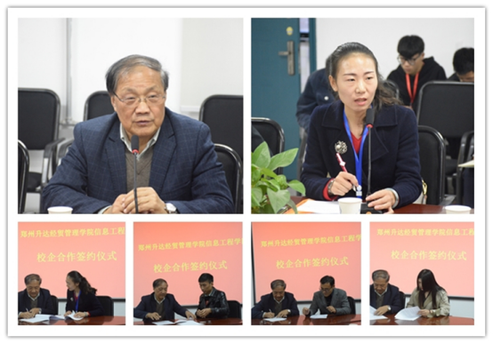 签约仪式在企业代表观看学院宣传片,对升达学院有大致了解后正式开始,首先,袁奉亚老师对到来的企业代表人员进行一一介绍,紧接着,各企业代表人依次介绍了各自公司取得成绩、核心理念、涉猎领域、发展方向、所需求人才以及对校企合作的理解和期待。随后,院长李学桥教授代表信息工程学院欢迎大家来到升达招聘学生,洽谈合作,为我院学生提供更多的就业机会,其次,院长详细介绍了信工学院各学科所取得的优秀成绩,随后,院长提到信工学院学生就业质量在升达属于佼佼者,强调了我院重视理论教学,重视应用技术的教学,重视应用型人才的培养。院长表示非常期待能与各企业合作,在合作当中,提高和企业的契合度,尽快培养企业所需要人才,使教学不脱离社会,为企业输送更合适的人才,为社会培养更多有用的人才。