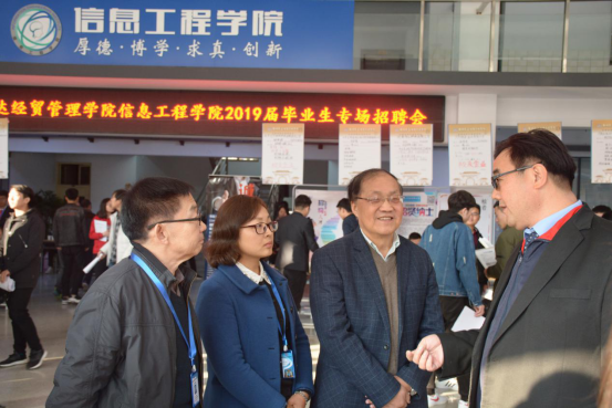 我校执行董事王新奇、党委书记张德伟、常务副校长崔慕岳、党办主任秦旻、校办主任朱永恒、学务长张现水、招生就业处处长刘景向、就业科科长冯科在信息工程学院主任李学院主任李学桥、党总支书记王新平、副院长白鑫等老师陪同下莅临会场,视察了我院招聘会情况。