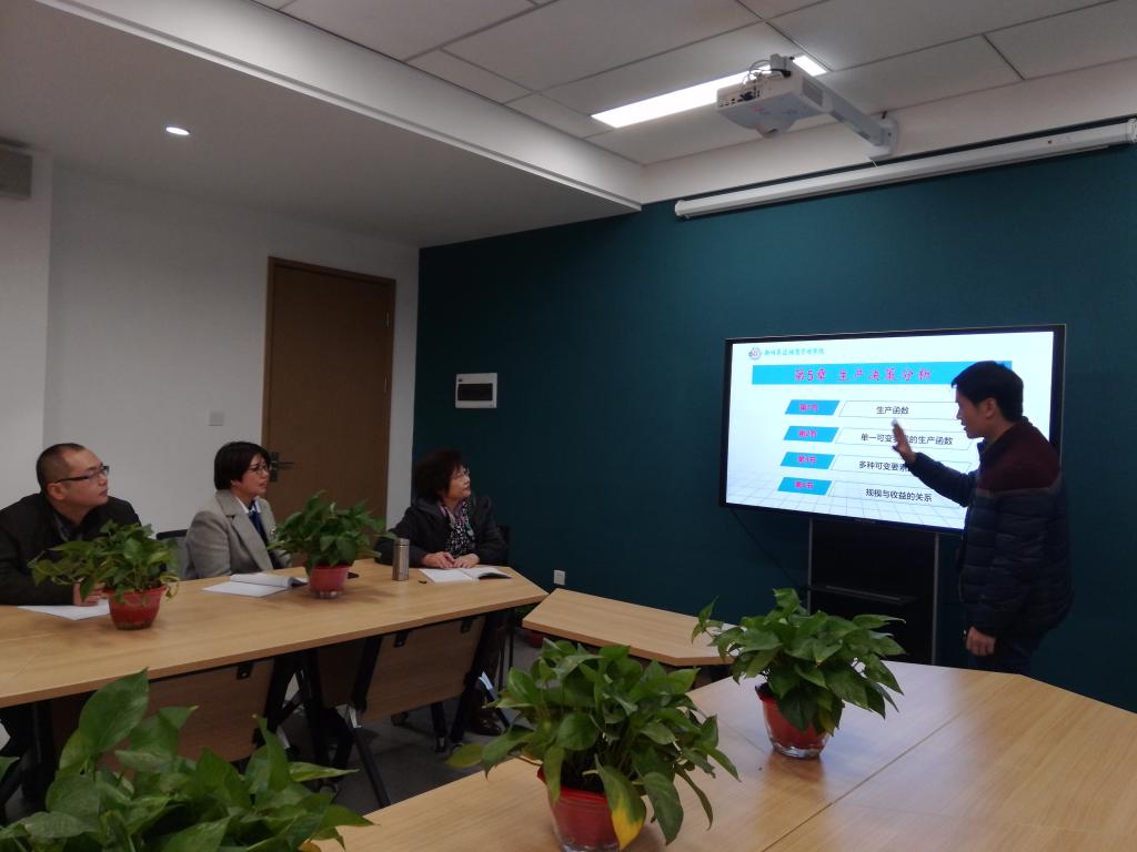 在活动中,首先,左教授请管理学院的李鋆老师展示了一节课的教学内容,左教授针对李鋆老师的课堂设计进行了点评和指导。