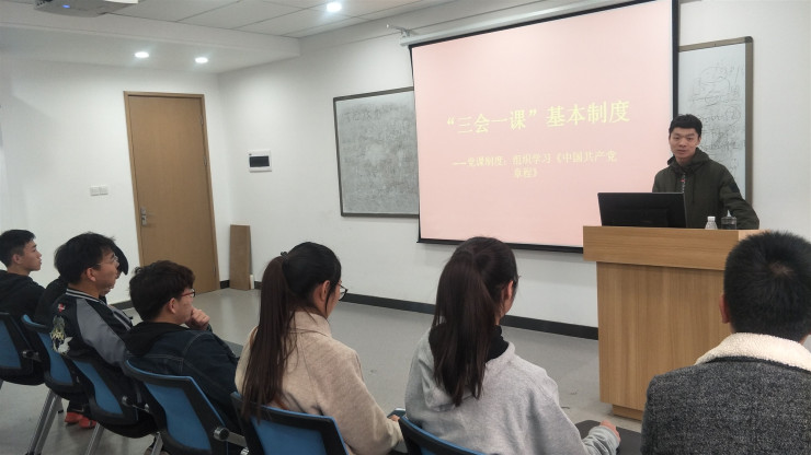 2018年11月22日,金融贸易学院第三党支部“组织学习中国共产党章程及三会一课基本制度”会议在教学3号楼112教室举行,活动由第三党支部宣传委员刘锐主持,金融贸易学院第三党支部全体学生党员、预备党员、发展对象参加了本次会议。