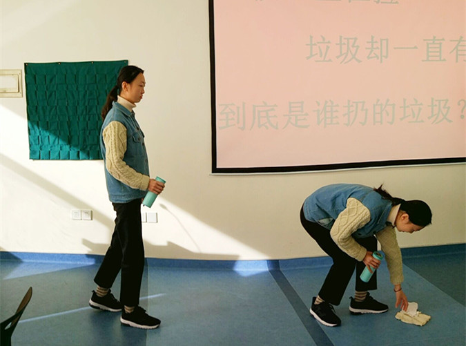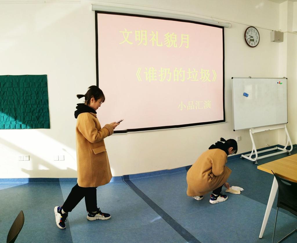 为提高大学生的文明意识,注意自身修养,让同学们养成不乱丢垃圾、注意个人卫生和公共卫生的习惯,文法学院2016级团总支部于2018年11月20日在学前教育综合实训楼605开展了文明礼貌月系列活动之小品汇演《谁扔的垃圾》活动,2016级团总支书记刘建辉老师及2016级全体学生参加本次活动。