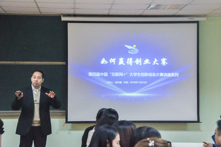培训会上,张志强导师做大赛指导培训。培训内容主要分两方面:一方面是如何赢得创业大赛;另一方面是如何做好职业生涯规划。首先,张志强老师从政策解读、评审要点、赢在“痛点”、赢在细节等方面,解读了参加创新创业大赛的重点以及方法技巧。随后,张志强老师又对如何做好职业生涯规划进行分析。张志强老师以幽默的语言风格、独特的见解和典型事例为大家带来了精彩的培训指导,赢得了到会师生的掌声。
