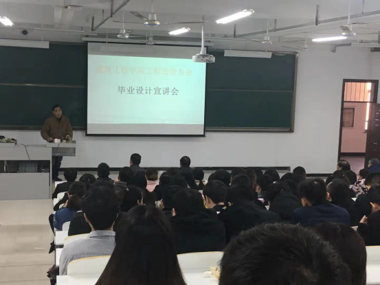 2018年11月22日上午,建筑工程学院工程造价教研室在实训楼608教室组织召开2015级工程造价专业毕业设计宣讲会。本次宣讲会由建设工程学院工程造价专业带头人杨开云教授进行宣讲,参加此次宣讲会的有建筑工程学院党总支书记韩炎涛同志、副院长姜衍仓教授、工程造价专业的部分教师。