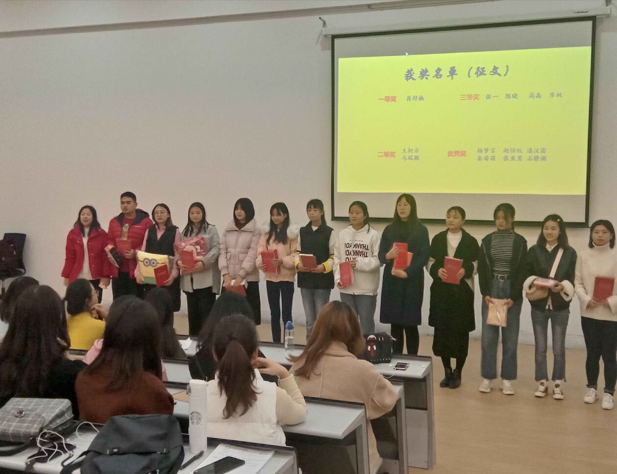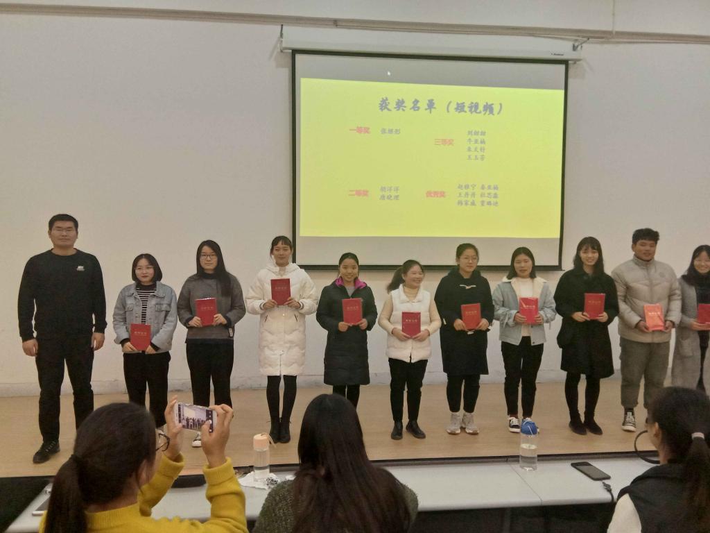 首先,李玉杰老师公布短视频和征文获奖名单,播放本次活动的获奖视频作品。然后,由我院心理专员李玉杰老师、18级张喜超老师为获奖人员颁发证书和奖品并合影留念;接下来,由团委副书记张明奇老师对此次大会作总结,他对积极参与本次活动的同学给予了充分肯定和高度评价,鼓励各班心理委员在以后做好各项宣传活动并组织同学们积极参加心理活动,也对心理委员以后的工作提出希望和要求,希望心理委员可以不断提高自身素质,认识到心理工作的重要性,并在班级里起到模范带头作用。