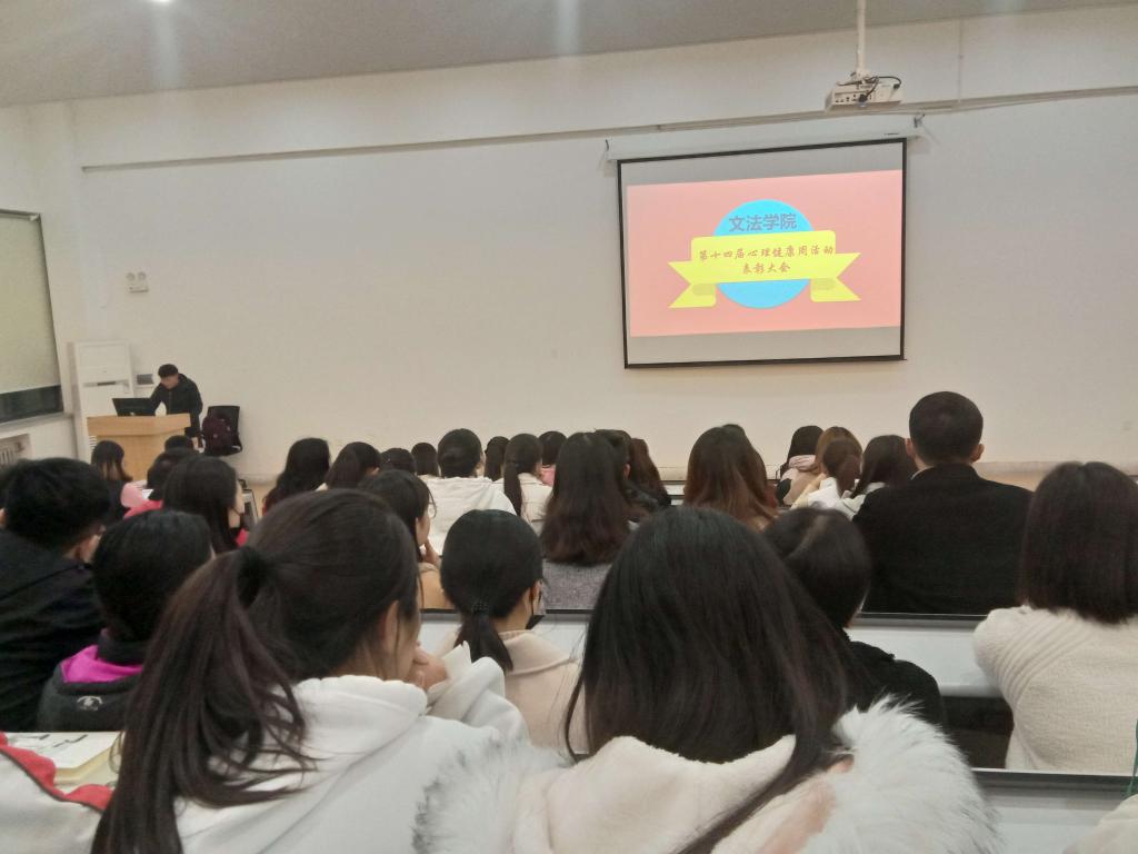 为响应我校心理健康周“不负昭华,出彩青春”主题活动,文法学院按照前期制订的活动方案,如期举办了心理短视频征集大赛和心理征文大赛。现已选出优秀作品,进行表彰。11月26日晚6点,文法学院第十四届心理活动表彰大会在文法学院118教室隆重召开。参加本次会议的有学院团委副书记张明奇老师,学院心理专员李玉杰老师,18级辅导员张喜超老师,文法学院全体心理委员以及获奖人员。