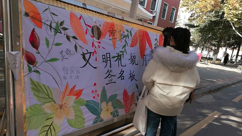 为践行党的十九大精神,提高学生的思想道德素质和文明程度,做一名讲文明,懂礼貌的大学生,管理学院特于11月6日至12月6日一个月期间举办“文明礼貌月”活动。