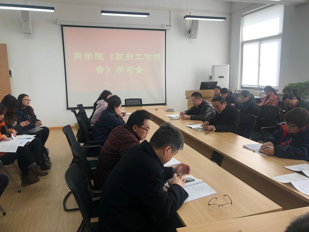 2019年全国“两会”的召开是党和国家政治生活中的大事,是对社会各项事业发展的总结,更是未来国家经济社会发展的指南针和风向标。3月7日下午,商学院组织全体教工集中学习《政府工作报告》。会议由商学院党总支书记宋维清同志主持,商学院全体教工参加了此次学习会。