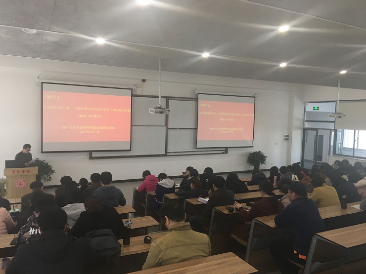 全国“两会”召开以后,为加强支部队伍建设,响应学校党委的号召,金贸学院党总支于3月7日在3号楼107室开展了以学习“李克强总理在第十三届全国人民代表大会第二次会议上做的《政府工作报告》”为主题的学习讨论会。本次会议由金贸学院党总支组织开展。金贸学院党总支钟江鸽同志、金虎斌副院长、杨毅副院长以及全体老师参加了此次会议,会议由组织员李雷老师主持。