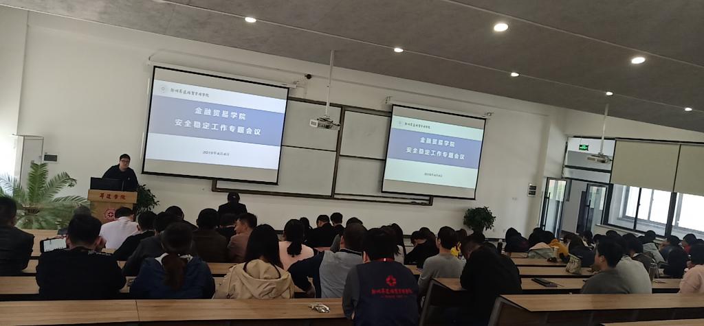 为切实提高师生的安全意识,加强学院安全稳定工作,4月4日,清明节假期前夕,金融贸易学院在教学3号楼107室组织召开学院安全稳定工作专题会议。学院党总支钟江鸽书记、杨毅副院长及学院全体教职工参加了会议。会议由党总支组织员李雷老师主持。