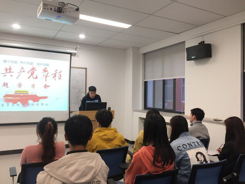 金融贸易学院党建工作中心杨敬带领大家集中学习了党的性质与宗旨、指导思想、政策路线方针、党的重要制度以及党员的权力和义务等,并通过观看学习视频,着重对习近平新时代中国特色社会主义思想、中国特色社会主义文化、实现中华民族伟大复兴的中国梦等方面进行了系统学习,深刻领会党章修正案的内容和意义。最后,结合习近平总书记系列讲话,就“学习践行党章,争做合格大学生党员”展开学习与讨论。