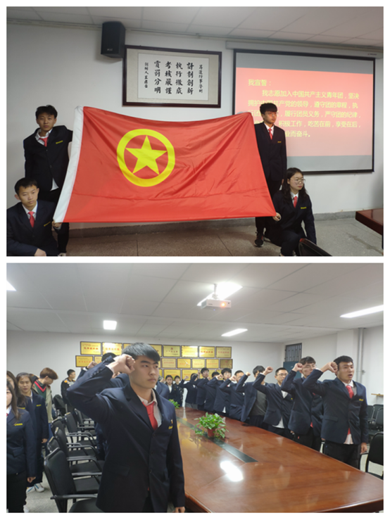 活动开始前,组织部部长张潇明确表示,本次入团的庄严性,希望大家能够严格遵守会场纪律,希望大家能够认真对待本次入团活动。入团仪式开始,全体起立合唱共青团团歌。接着,在18级软工二班团支书胡强带领新团员宣誓。鲜艳的团旗下,新团员举起右拳庄严宣誓:“我志愿加入中国共产党青年团,坚决拥护中国共产党的领导,遵守团的章程,执行团的决议, 履行团员义务,严守团的纪律, 勤奋学习,积极工作,吃苦在前,享受在后, 为共产主义事业而奋斗!”青春誓言,高昂雄浑,表达了同学们对共青团组织的无限向往和为团组织增光添彩的豪迈激情。最后,希望大家要在各方面不断提升自身素质和修养,为团组织增添光彩。
