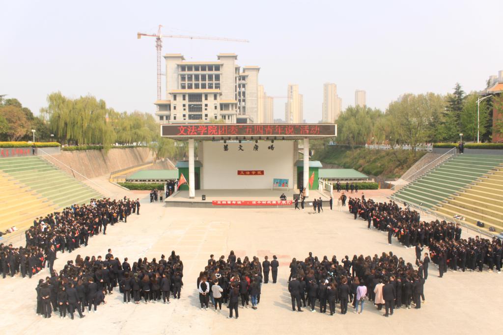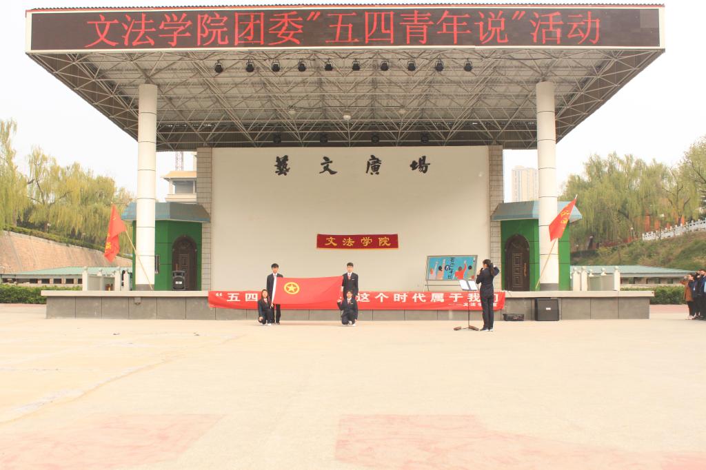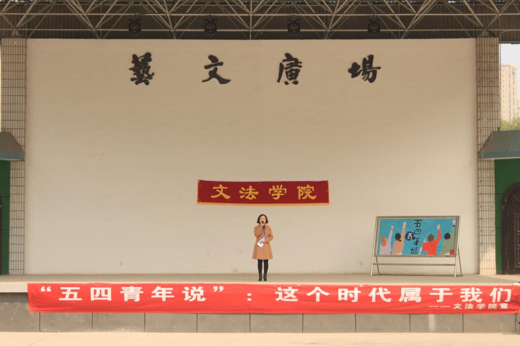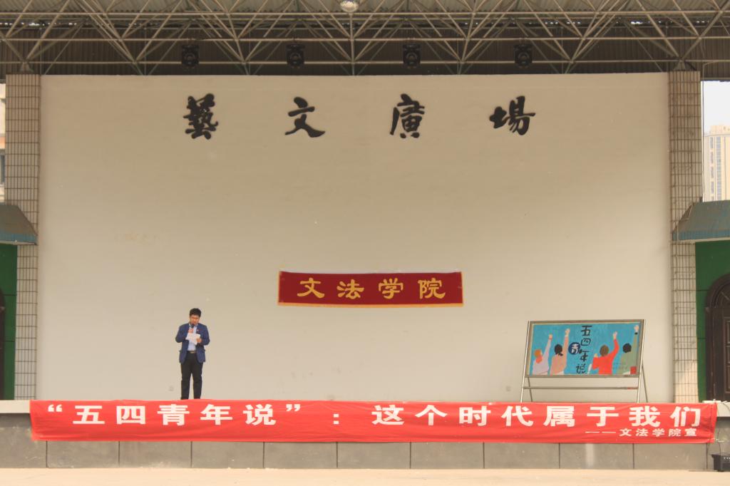 为纪念五四运动100周年,引导青年重温革命历史,增强听党话、跟党走的思想和行动自觉,4月11日下午2点30分,由文法学院团委主办的纪念五四运动100周年“五四青年说”活动在艺文广场隆重举行。参加本次活动的领导、老师有校团委书记李霄锋、校团委副书记兼团委组织部部长李松涛、校团委宣传部负责人石守金和文法学院各年级团总支书记。文法学院2015级、2016级部分优秀团员代表,2017级、2018级全体学生参加活动。活动由文法学院团委书记郑玲玲主持。
