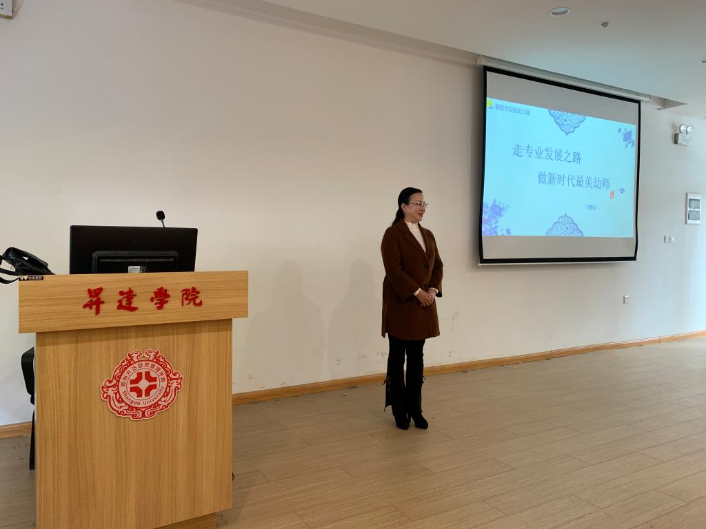 首先,闫主任对鹤壁市实验幼儿园王智云园长进行了具体介绍,并对王园长的到来表示由衷的感谢。此次报告会主要从教师职业和专业认同、幼儿教师专业发展的内涵、幼儿教师专业发展的阶段三个方面做了深入的讲解和分析。