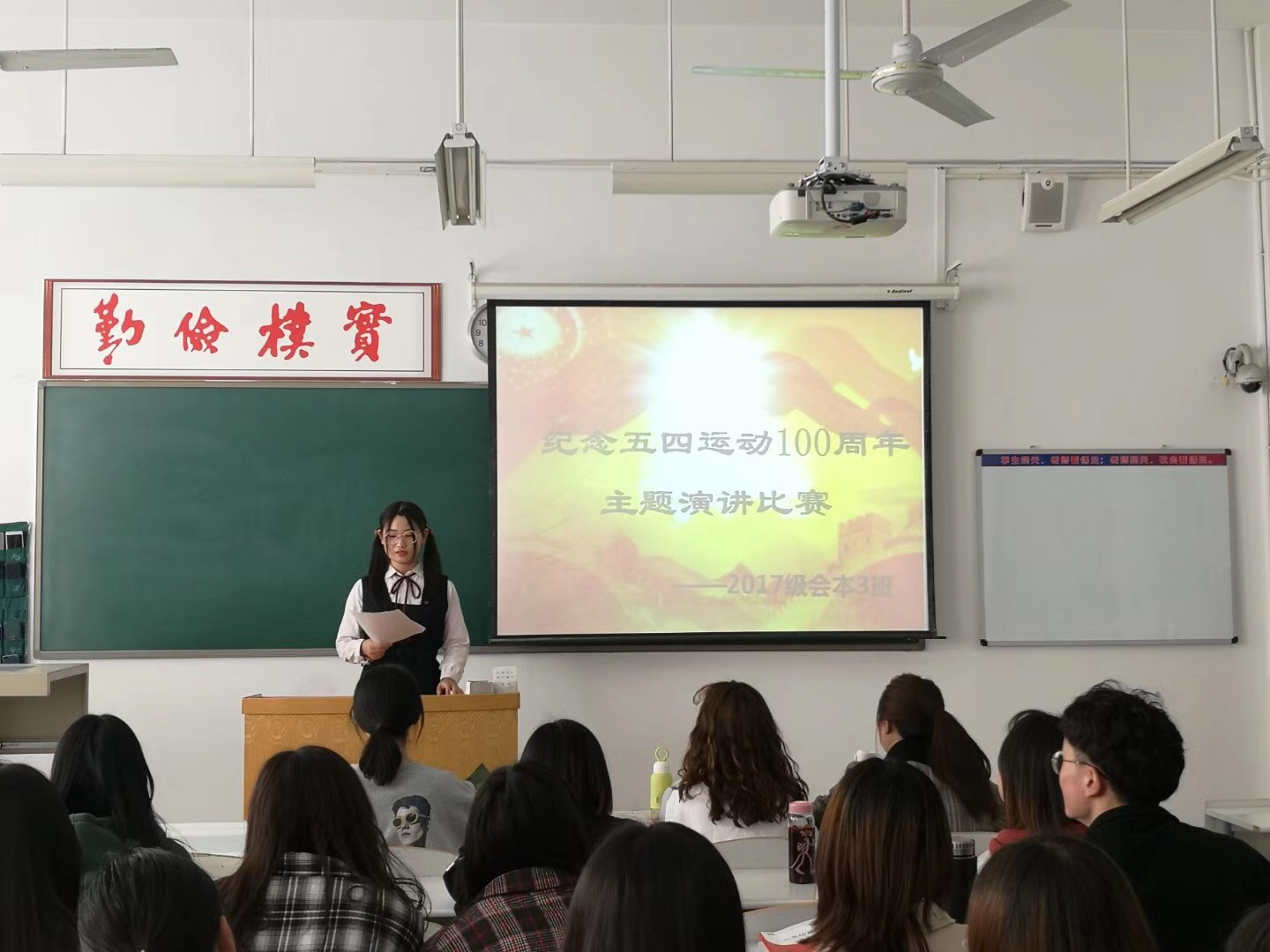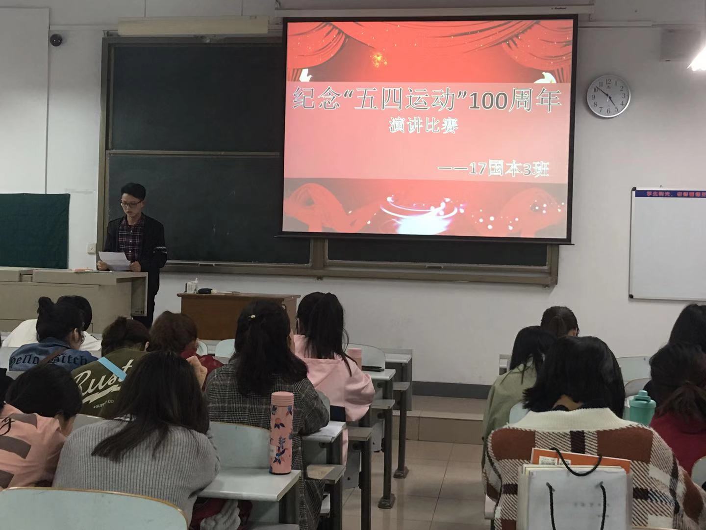 “时代的东风已然乍起,振兴中华的责任,已落在我们青年人的肩上,五四的火炬,已传到了我们青年人的手中,五四的精神,需要我们青年人发扬光大。亮剑出鞘,更待何时?身为21世纪祖国未来的青年俊才的我们,就应该从现在开始,为了民族之独立,为了国家之繁荣,为了中华之崛起,艰苦奋斗!”一场以“弘扬五四精神、创造青春辉煌——纪念五四运动100周年”为主题的演讲比赛正在建工大楼611教室如火如荼地进行着。17级土木工程二班万亮亮同学的演讲洋溢青春活力、富有人生启迪,深深感染了在场的同学们,阵阵掌声中不时掀起高潮。