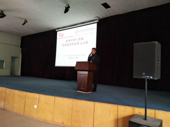 4月10日、4月15日中午,建工学院体育学院党总支书记韩炎涛同志在龙湖报告厅以《新时代深入推进党的建设新的伟大工程》为主题为我校第九期业余党校培训班全体学员授课。