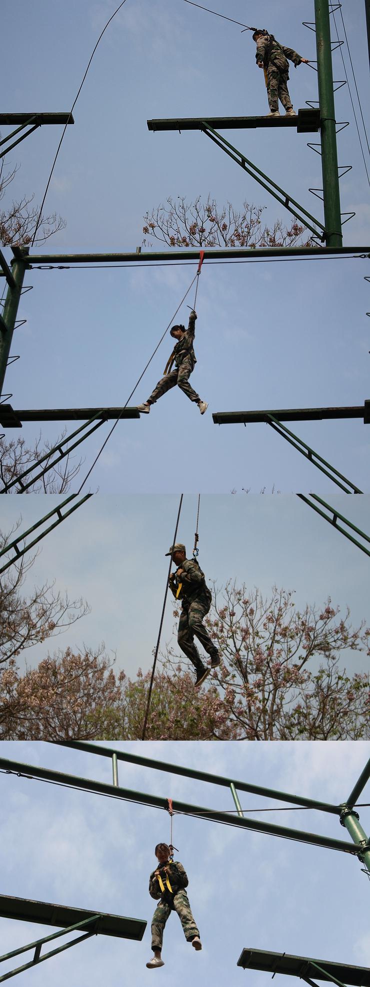 在“高空断桥”项目中,两队在10米的高空中,大家都表现了不同程度的恐惧,但在同伴的鼓励下最终都能够挑战自己、战胜恐惧。该项目不仅提高成员自信心,帮助成员激发潜能,也增强了成员的服务意识。