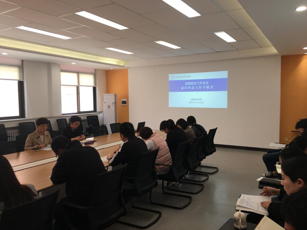 4月16日下午,金融贸易学院在教学3号楼212会议室,召开思想政治工作会议意识形态工作专题会。学院党总支钟江鸽书记、党总支委员、团委书记闫帅老师、学院全体思政工作者参加了会议。
