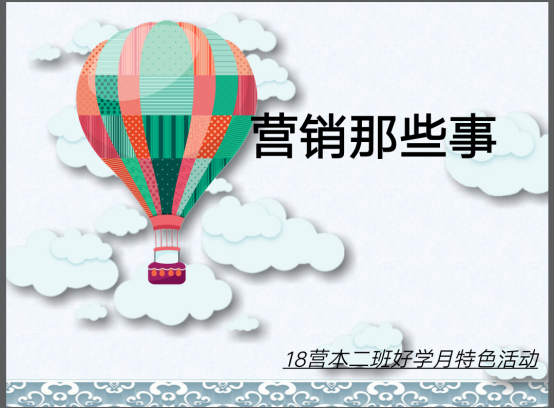 4月11日上午8:30在道镕楼420教室,18营本2班根据学校制定的本学期好学月活动方案,开展了营销专业独具特色的好学月活动——营销那些事。此次活动旨在营造班级良好的学习氛围,进一步推动班级学风建设。