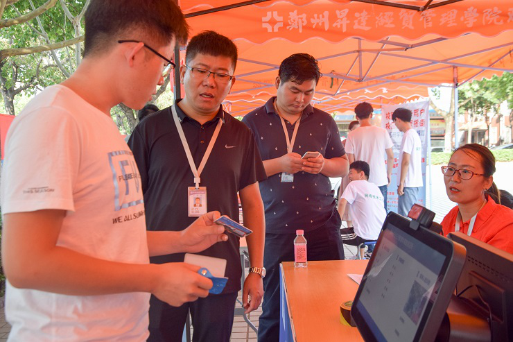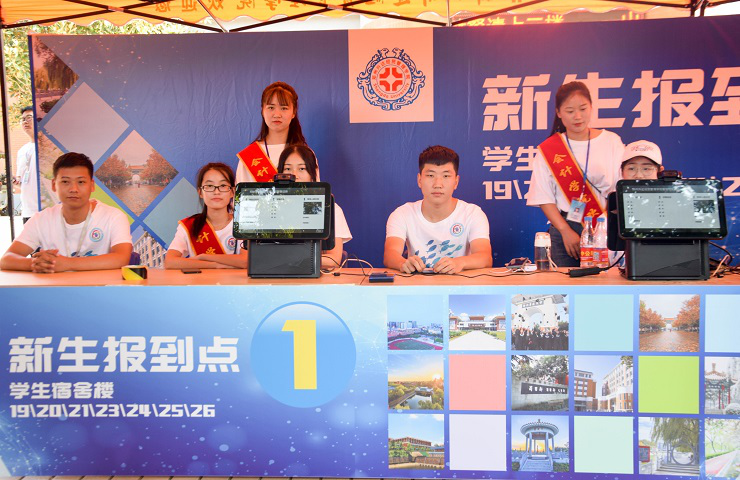 会计学院今年首次采取数字迎新,极大地提升了新生报道的工作效率,简化报道流程。8月31日早上7:30,为迎接新生,辅导员老师以及全体团学会成员按时来到了迎新报道点,站好第一班岗。迎新人员统一服饰,展示着会计学院精神抖擞的风貌,迎新工作有条不紊地进行着。新生到校带着身份证在报道现场进行人脸识别,之后在官微对话框中回复“地图”便可找到宿舍,领取宿舍钥匙开启大学生活。团学会成员不仅耐心地为新生、家长解答各种问题,并且主动帮助新生拎行李、指路找宿舍等,帮助新生完成报到工作。