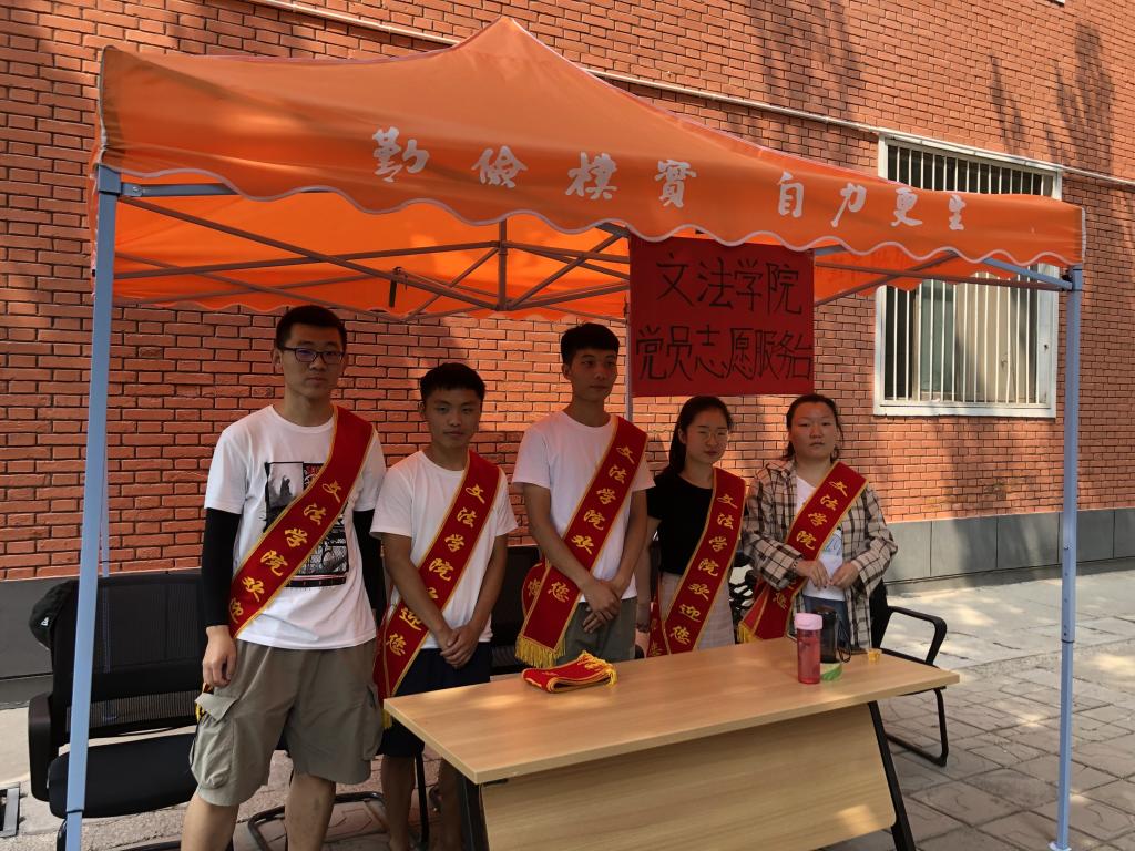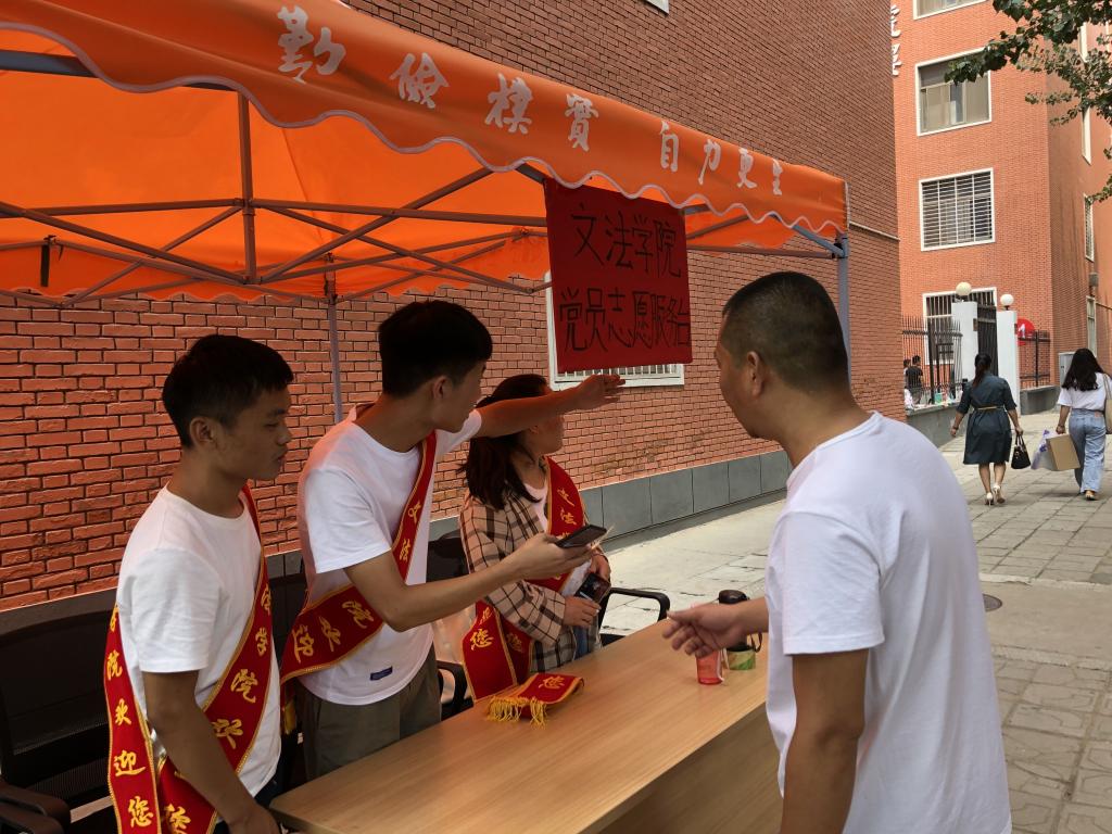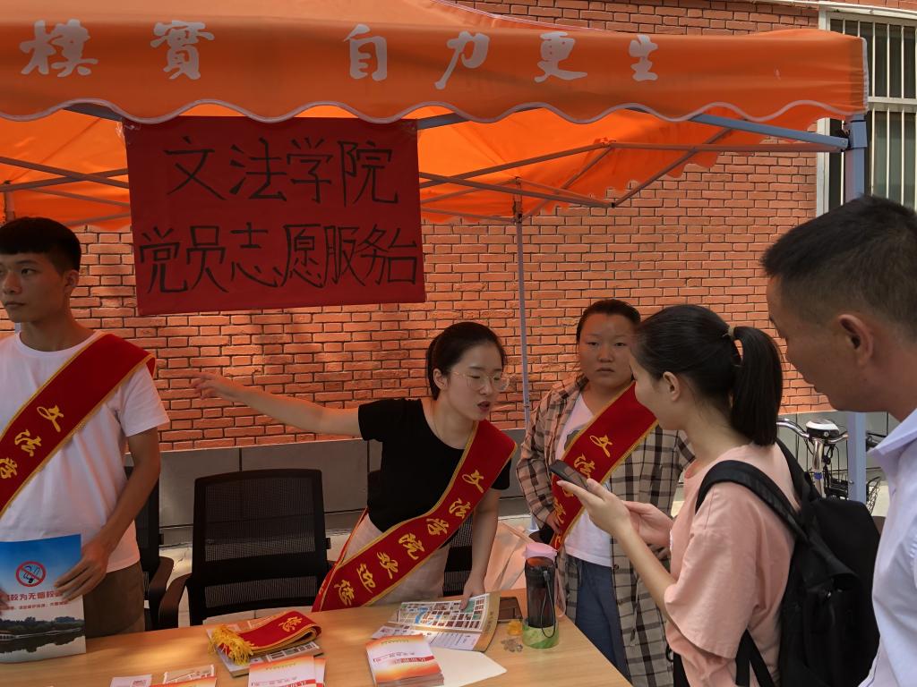 9月4日,19级本专科新生报道第一天,文法学院党总支积极组织党员师生开展迎新工作。为了使新生能够更好的适应学校,文法学院设立“党员志愿服务台”,安排部署各支部学生党员及积极分子开展志愿服务活动。