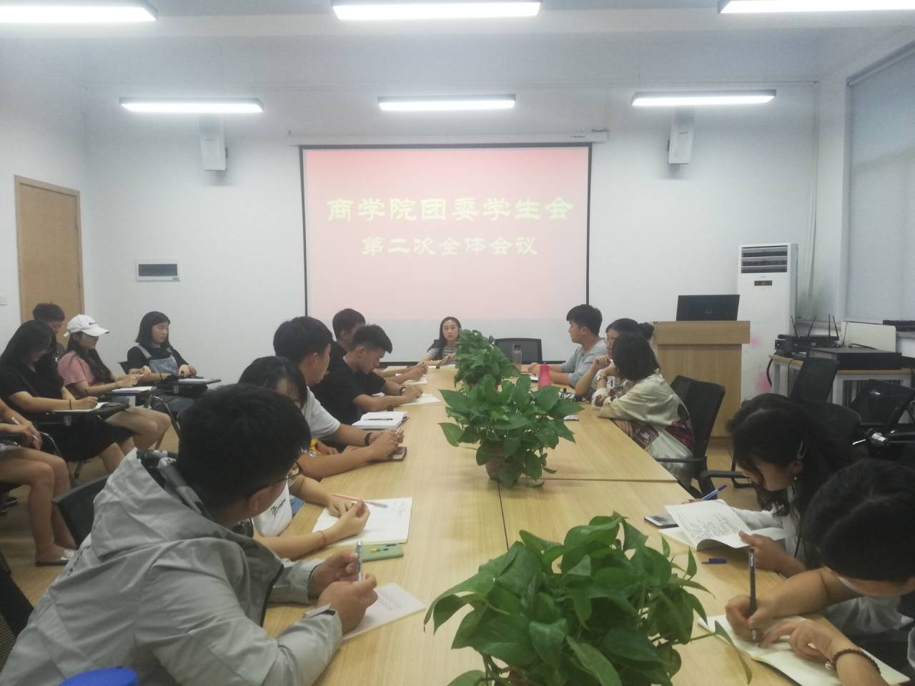 为了商学院团委学生会更好的开展工作,特于2019年9月9下午6点40,在教学2号楼315举行本学期商学院团委学生会第二次全体例会。参加本次会议的有团委副书记王然、学生会主席韩昊哲、学生会副主席任姝萍以及学生会各部门部长。会议由学生会主席韩昊哲主持。