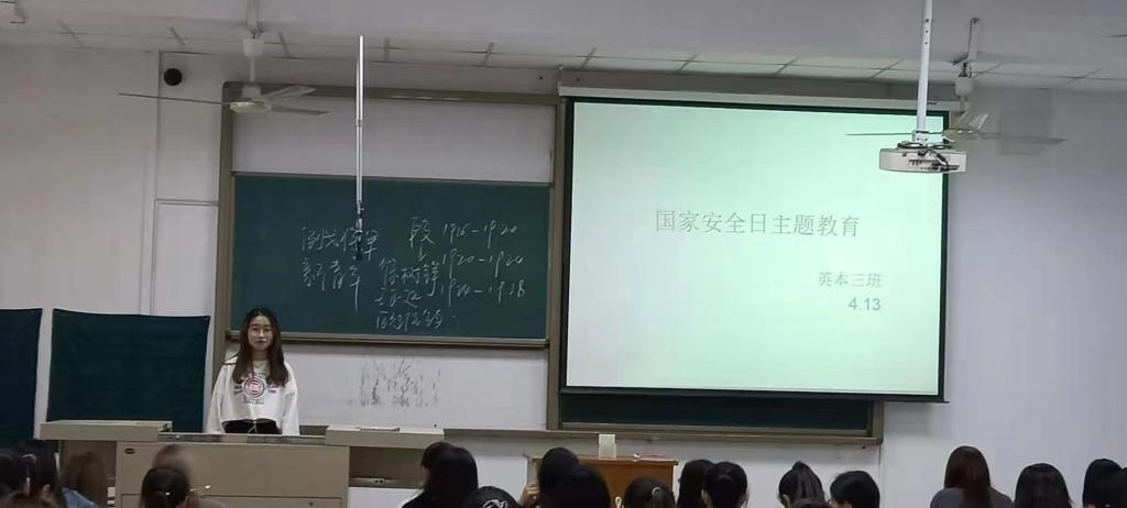结合高校实际和大学生特点,4月14-15日外国语学院各团支部为进一步加强当代大学生国家安全意识,开展丰富多彩的教育活动,各班积极召开国家安全教育的主题班会。