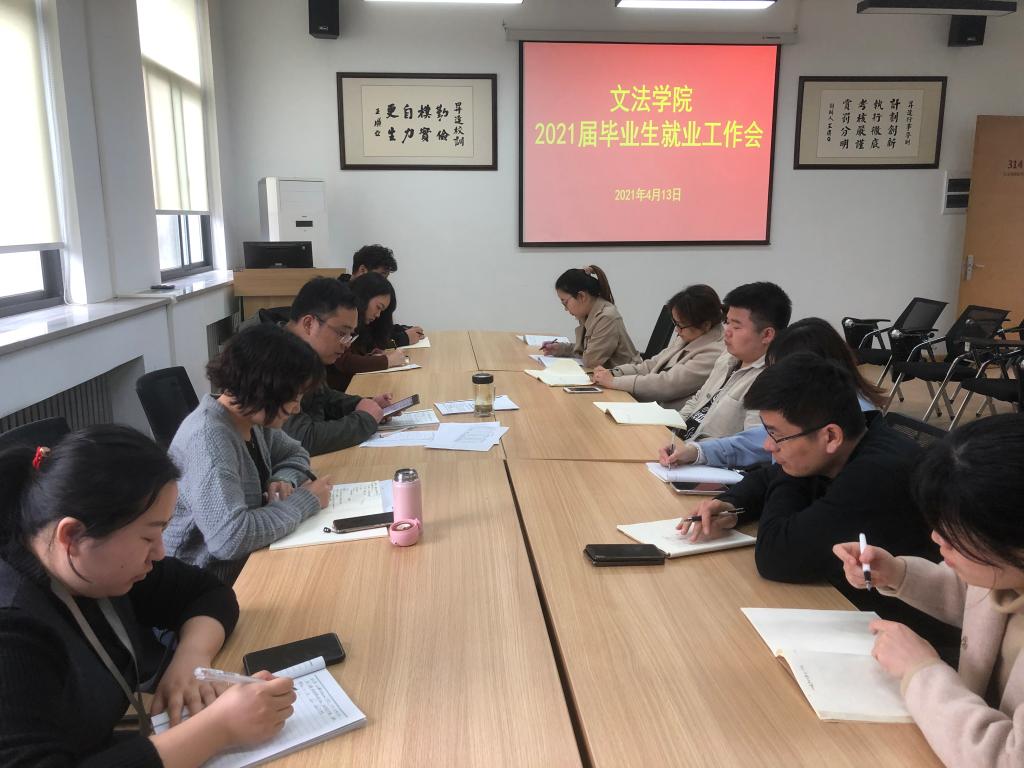 4月13日下午,文法学院在教学1号楼314会议室召开就业工作会,学院党总支书记刘晓川,行政秘书郑玲玲及全体辅导员参会。
