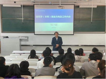 随后,马璟炜老师对建筑设计院与房地产开发商相关职业进行了详细介绍,让同学们在求学的同时及时掌握未来的就业信息,了解到设计院以及房地产公司中各个岗位的工作内容。使学生更加明确了努力方向,对自己未来职业发展规划有了更清晰的认识。并通过自身的经验去让学生要在学习的同时多实践、多总结提高自身专业素养。