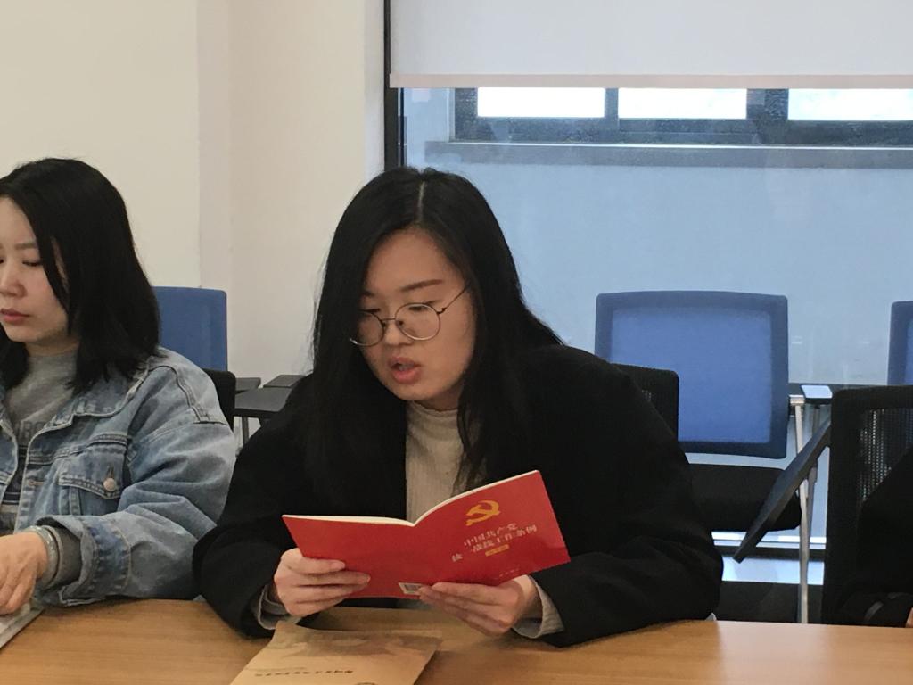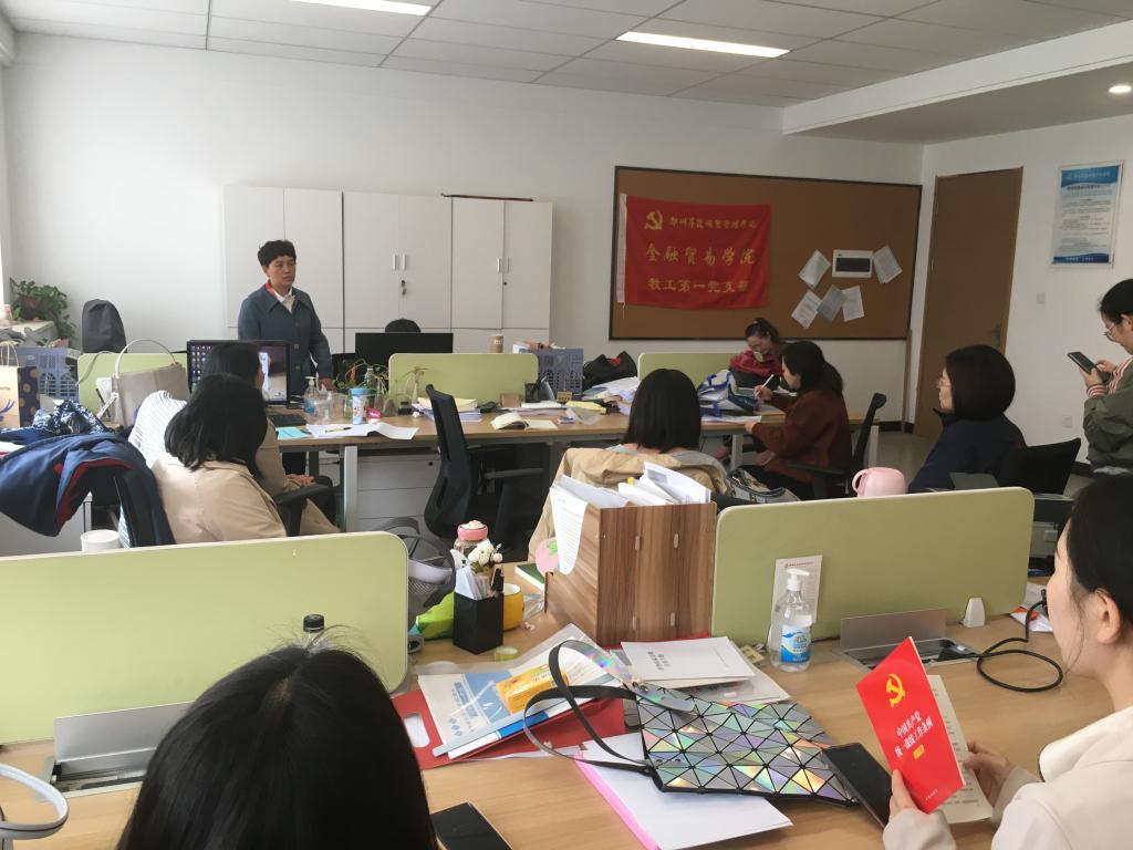 4月21日上午,金贸学院组织全体辅导员开展《条例》专题学习会。会议上,由学院党总支书记钟江鸽、学生第一党支部组织委员、辅导员杨秋雨、学生第三党支部组织委员、辅导员曾静静、学生第五党支部书记、辅导员杜留荷分别进行领学。