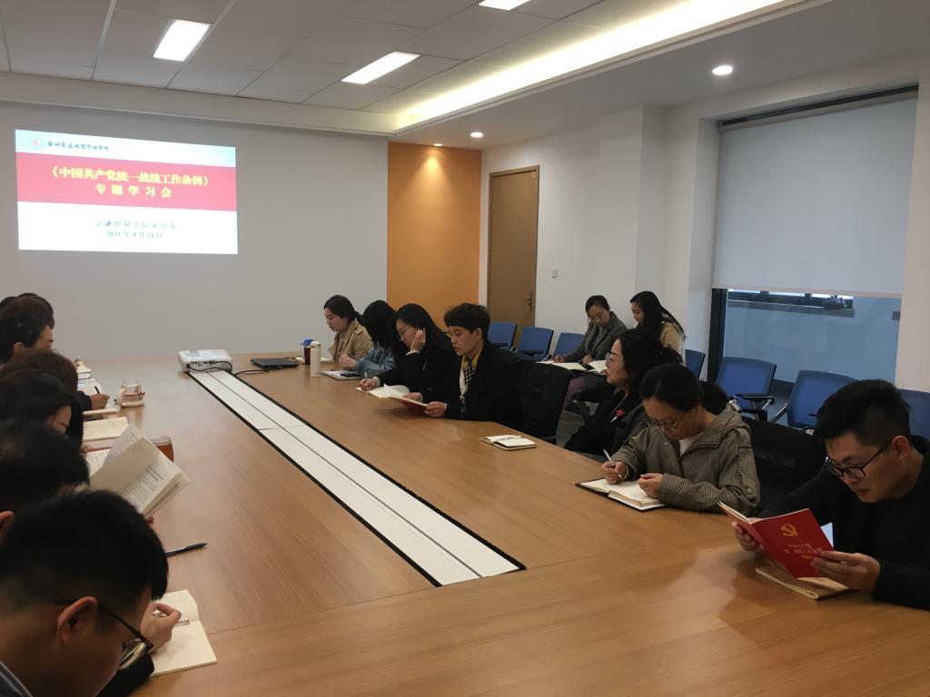 为巩固和发展最广泛的爱国统一战线,全面建设社会主义现代化国家、实现中华民族伟大复兴的中国梦提供广泛力量支持,按照学校工作部署,制定学院学习《中国共产党统一战线工作条例》(以下简称《条例》)的实施方案,重点围绕《条例》修订的背景意义、工作对象、工作职责和如何开展统战工作等方面,按照不同对象,组织进行《条例》学习研讨。