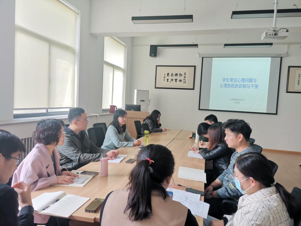 为提高文法学院辅导员队伍的工作水平,切实提高辅导员对学生心理问题的处理能力,4月22日上午,文法学院邀请校心理健康中心尚瑞莉老师在教学1号楼314会议室为辅导员展开了学生心理健康知识培训,文法学院党总支书记刘晓川、行政秘书郑玲玲以及全体辅导员参加本次活动。