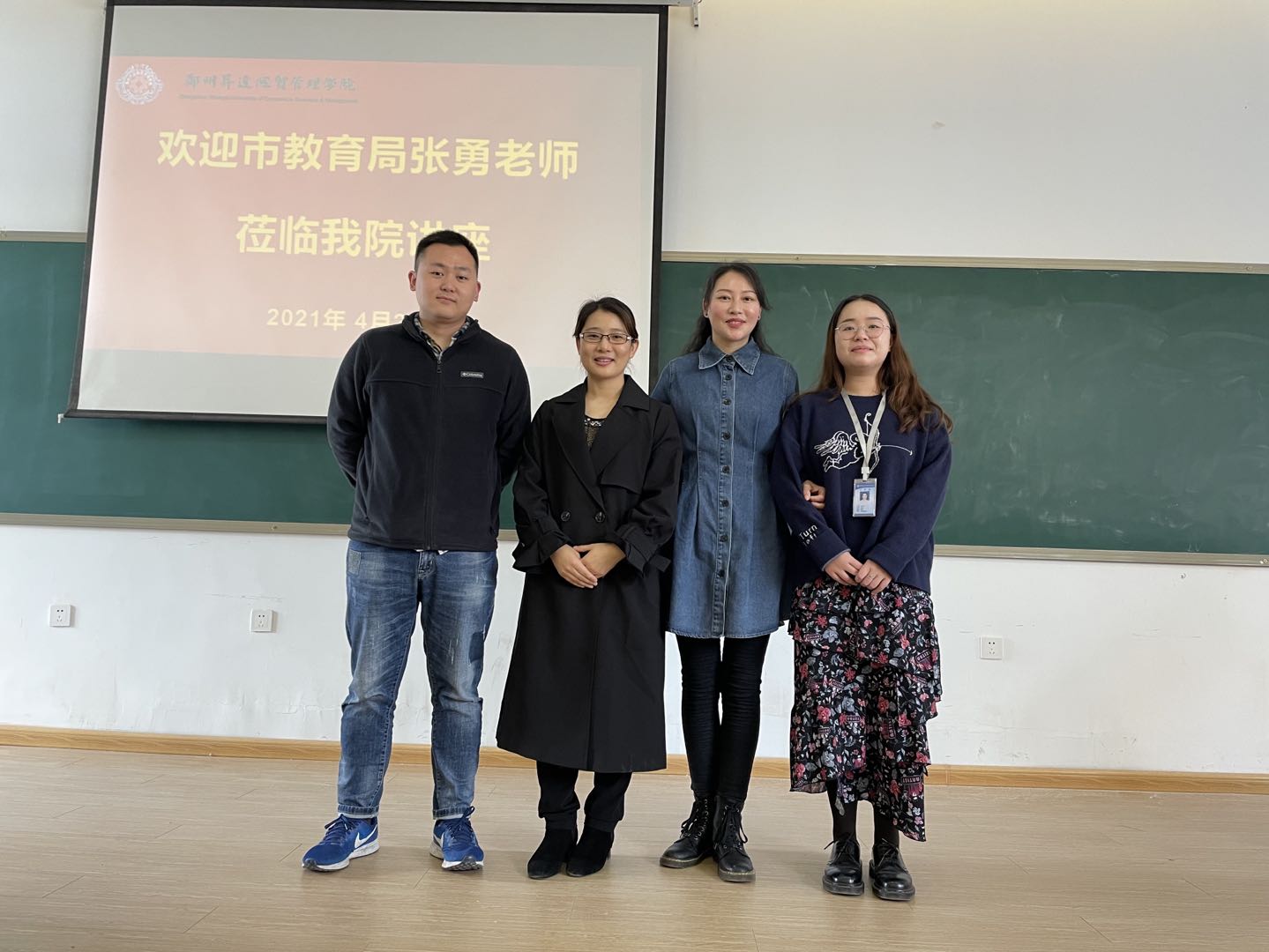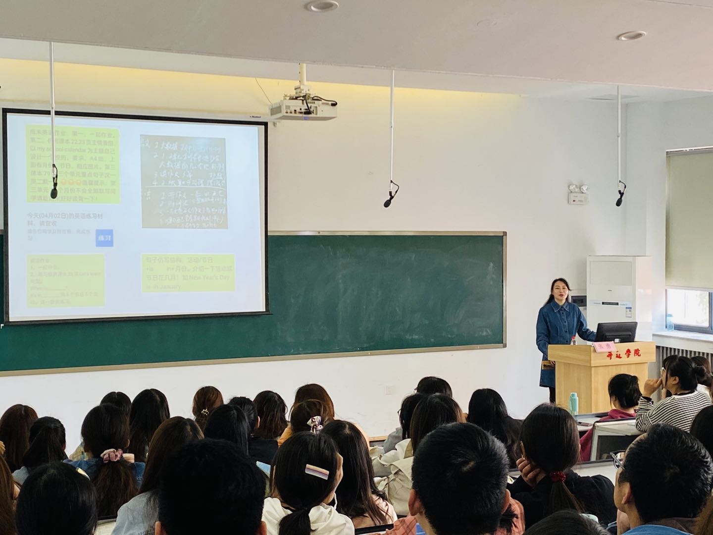 2021年4月12日下午两点,外国语学院邀请新郑市教育局英语教研员,中小学高级教师张勇在教学1号楼208为英语专业师生做了一场题为“中小学英语教学设计”的学术讲座。本场讲座由英语教研室主任熊华霞老师主持,高保欣、郭真等老师及我院英语专业19级英本四个班学生参加了此次讲座。