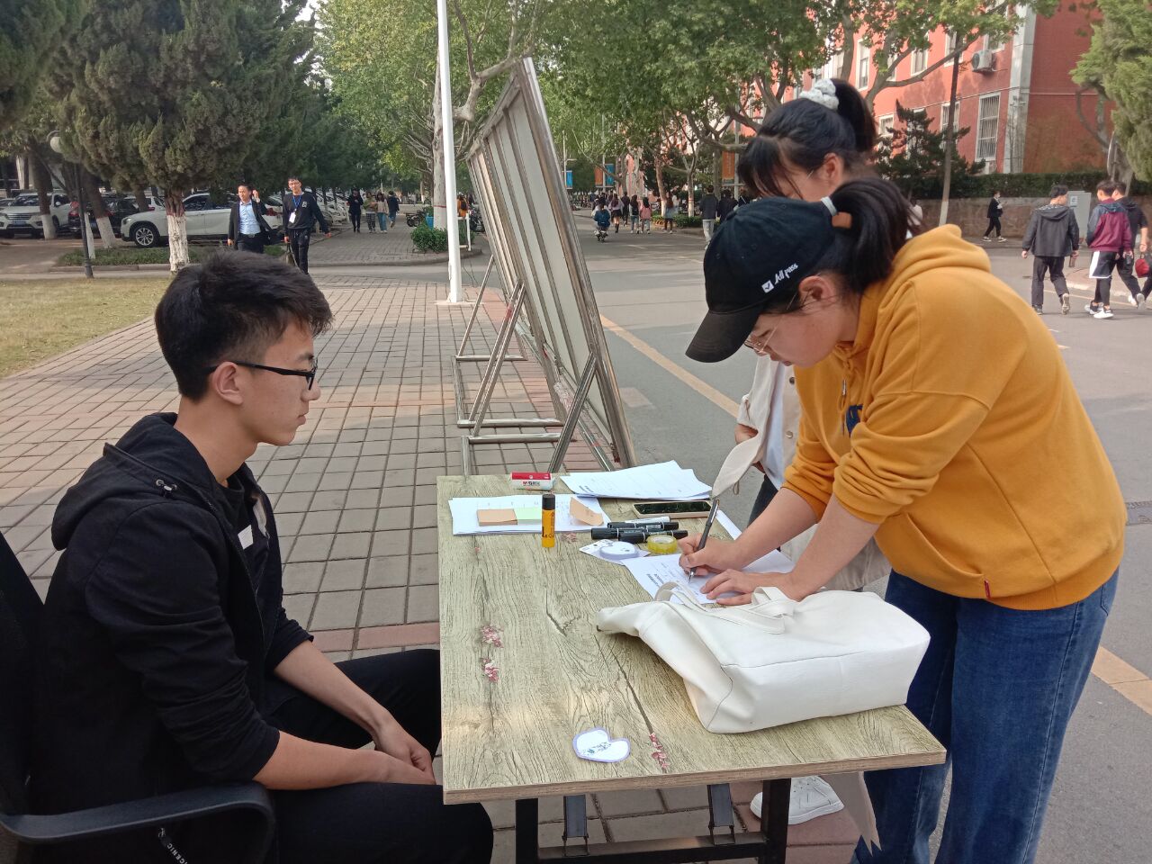 活动开始前各部门工作井然有序。商学院团委学生会传媒部负责活动宣传,展板制作;学术部负责策划展板内容,搜寻物物交换的图片来加强宣传,并且负责在明德广场统计旧物,维持秩序。活动过程期间同学们积极参与并纷纷带来了自己闲置的书籍、饰品、玩具等。工作人员也认真的将旧物摆放在桌子上。随着活动的不断进行,桌上的旧物也越来越多,大家热情很高,都在其中交换到了满意的物品。