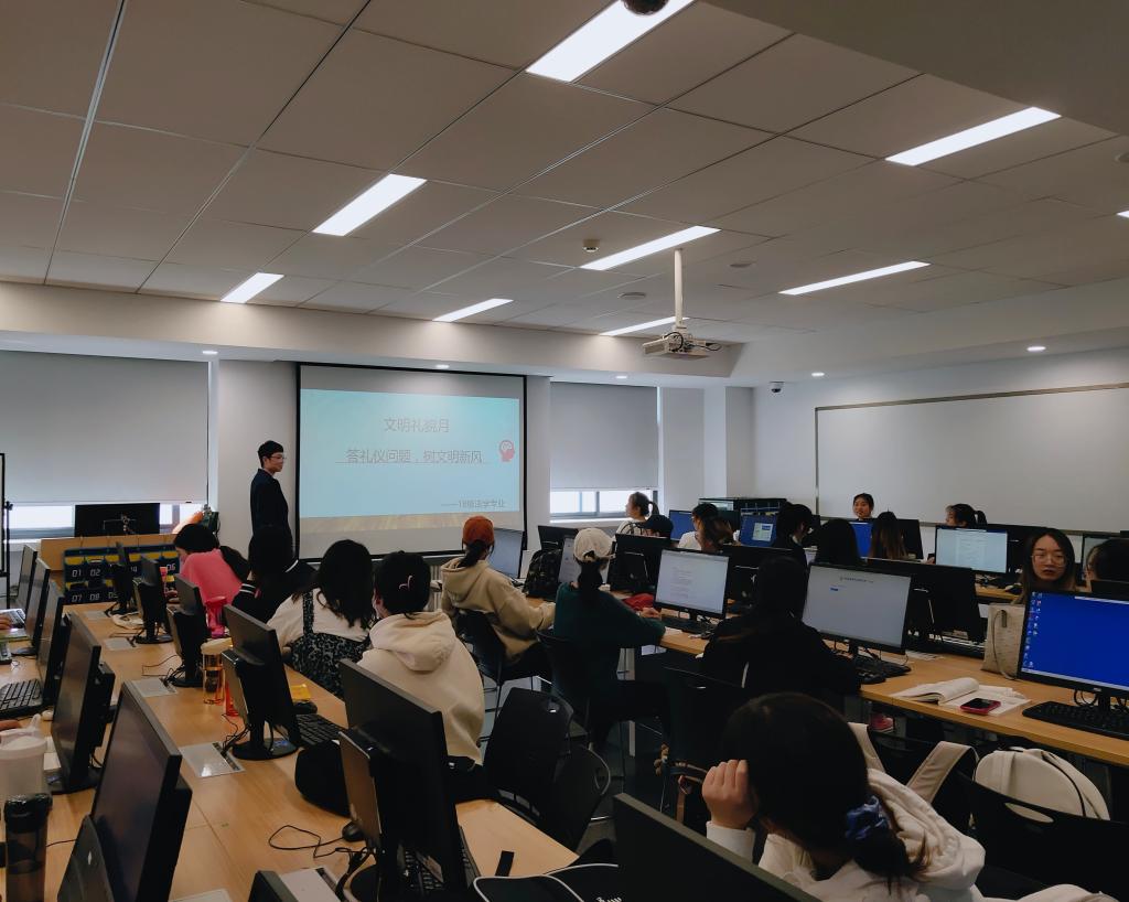 为了加强大学生的文明修养,文法学院2018级法学专业学生于4月21日,在实训楼A-507教室开展了以“庆祝建党一百周年,争做文明少年”为主题的文明礼仪知识竞答活动。